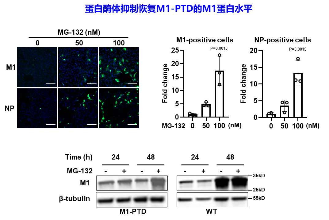 3. 泛素-蛋白酶体系统介导M1-PTD蛋白降解和复制能力减弱