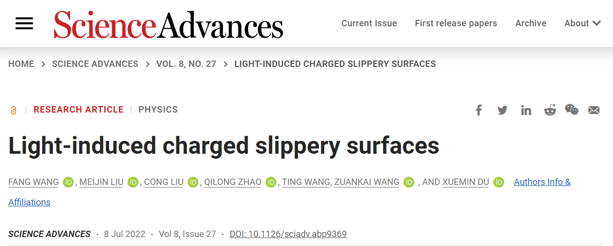 Science Advances | 凯发k8国际研究团队在光诱导带电润滑表面取得重要进展