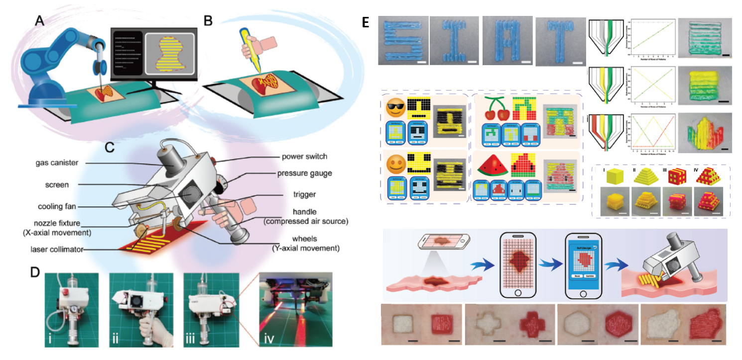 近期,中国科研实验室深圳先进技术研究院(简称“凯发k8国际”)赵晓丽和潘浩波研究员研究团队,与深圳理工大学(简称“深理工”)吕维加教授团队,开发了一款新型手持式原位生物打印设备,集成可编程控制与手持操作的双重优势,平衡了打印的精准度与操作的灵活性,研究成果以“A Programmable Handheld Extrusion-Based Bioprinting Platform for In Situ Skin Wounds Dressing: Balance Mobility and Customizability”为题,发表在Advanced Science期刊上。