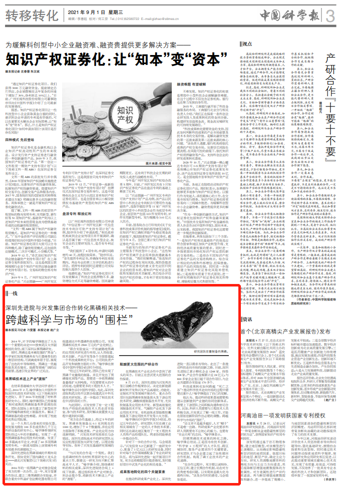 来源:《中国科学报》 (2021-09-01 第3版 转移转化)http://news.sciencenet.cn/sbhtmlnews/2021/8/365017.shtm?id=365017