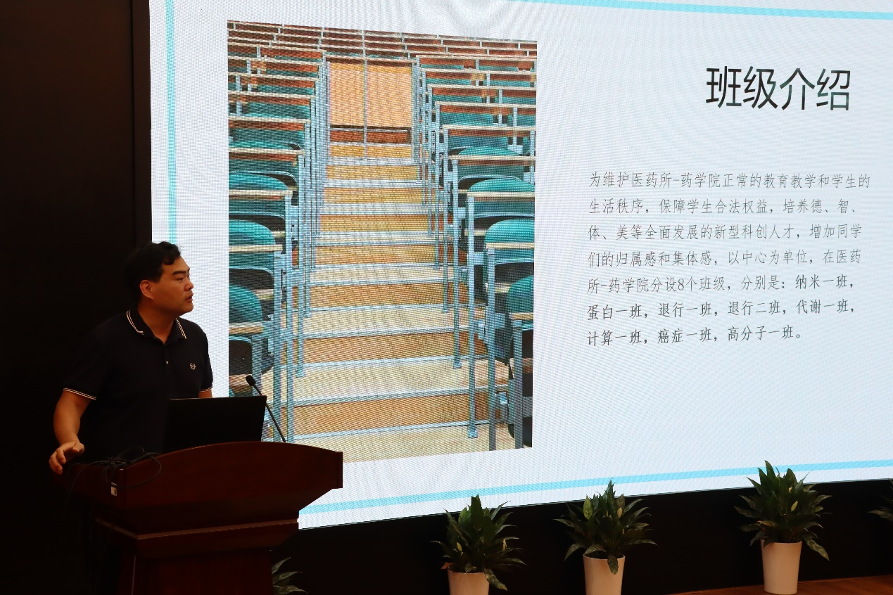 为了更好地培养学生的集体感和归属感,根据院学生工作安排,拟在医药所/药学院试点创建学生工作办公室,并以中心为单位设立班级,每个班级配备一位班主任。借此次毕业会机会,医药所所长助理畅君雷向在座学生介绍了现在各个班级的情况及班主任的职责,随后,各位班主任也首次与同学们面对面进行了自我介绍,以便未来学生工作召开的顺利进行。