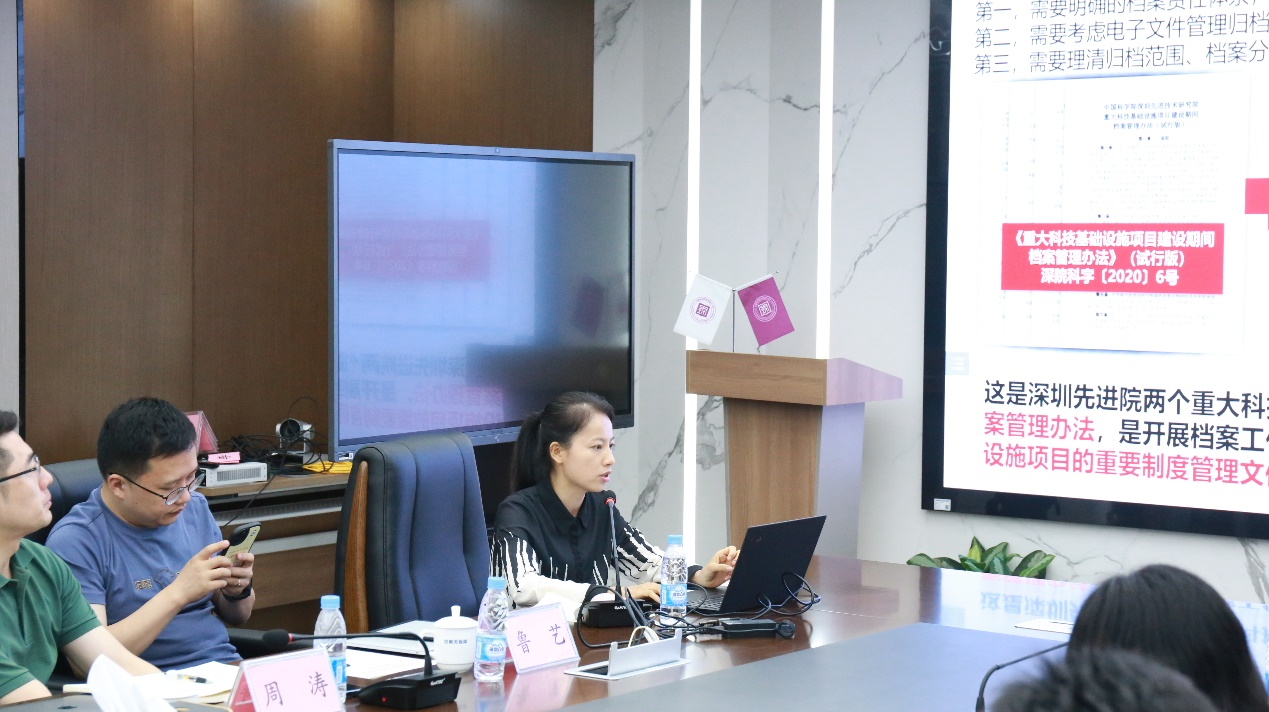 随后,综合处林明香对新发布的《中国科研实验室深圳先进技术研究院重大科技基础设施建设期间档案管理办法》的修订背景及要点进行分析读,新版管理办法进一步明确了档案责任体系,强化了重大设施中高层领导的监督审核机制,厘清了归档范围和档案分类。