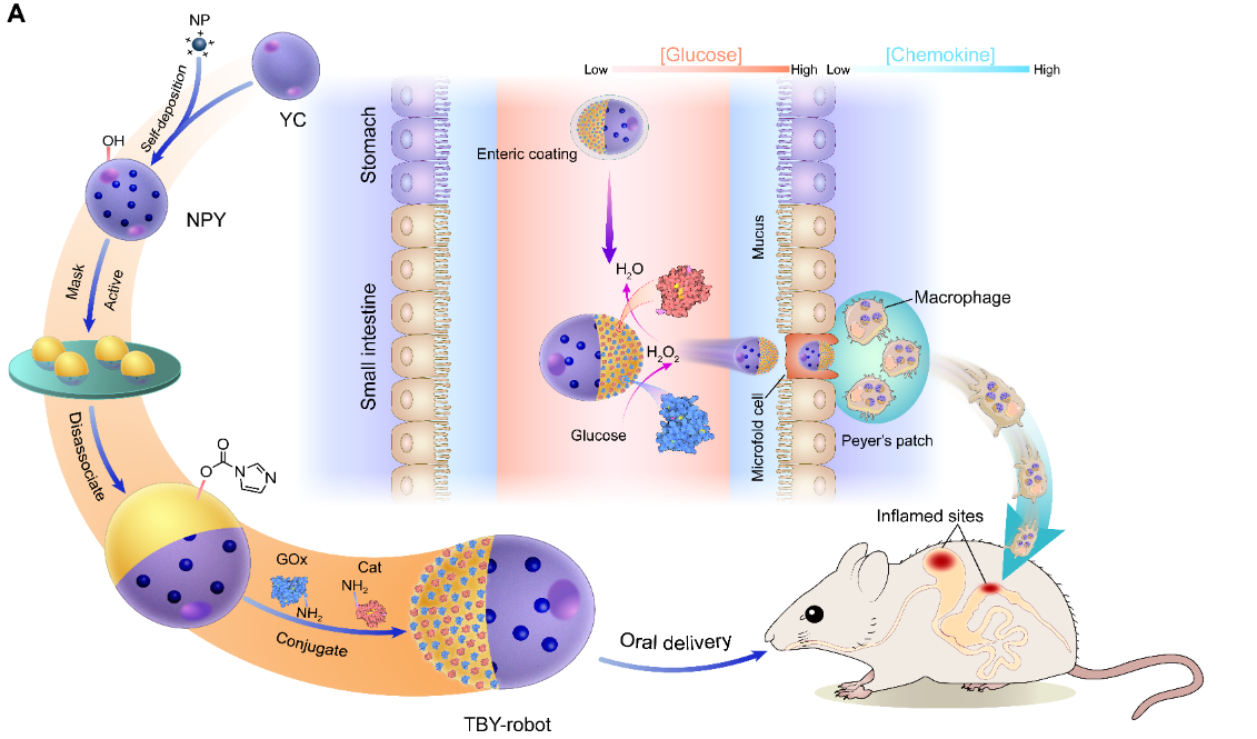 TBY-robot像“纳米快递员”,派尔氏结类似于“中转站”,顺利获得切换不同的交通工具,将货物精准的递送到目的地。酵母微纳生物机器人的成功开发为胃肠道炎症和其他炎症相关疾病的治疗给予了全新的技术手段。