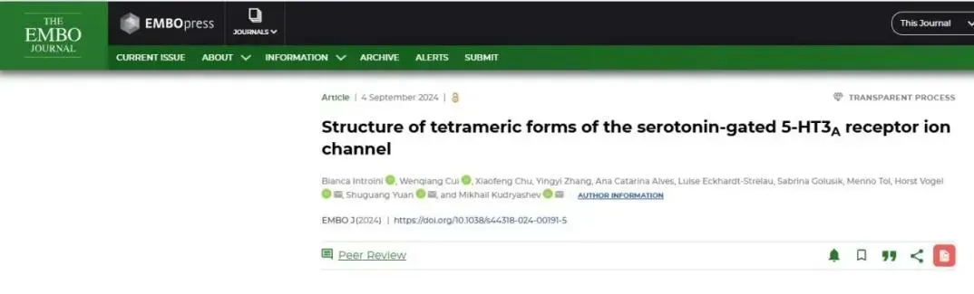 The EMBO Journal | 科研团队发现抗抑郁靶点5-HT3R自主装配新机理