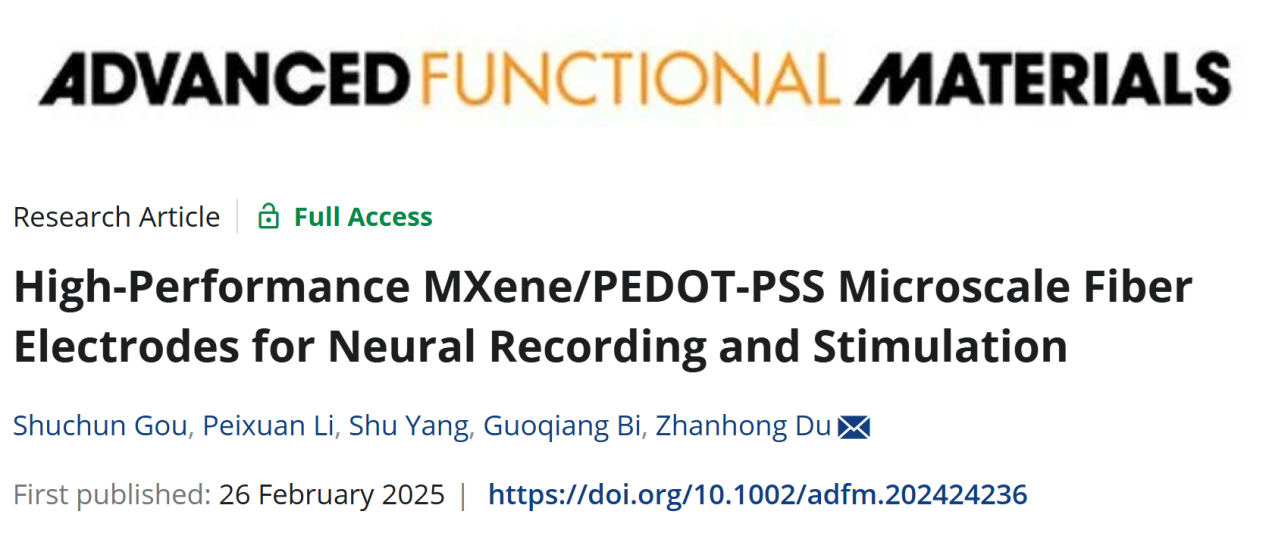 该纺丝体系顺利获得耦合缓慢凝固与应变诱导排列机制,在避免引入生物危害物质的同时,赋予电极纤维致密的微纳结构。其中,MXene层间精准组装的PEDOT-PSS分子形成三维导电网络,使复合电极电荷存储能力达到989.77 mC/cm²,较传统金属电极提升两个数量级。这种兼具高导电性与离子渗透性的界面创新,为神经环路动态解析给予了突破性工具。研究证实,MPP的综合电学性能较现有神经电极材料提升10-100倍,在神经记录与刺激实验中表现卓越,且完全兼容磁共振成像(MRI)。这种可低成本批量制备的微米级纤维电极已展现出临床转化潜力。相关成果以"High-Performance MXene/PEDOT-PSS Microscale Fiber Electrodes for Neural Recording and Stimulation"为题,于2025年2月发表于Advanced Functional Materials。