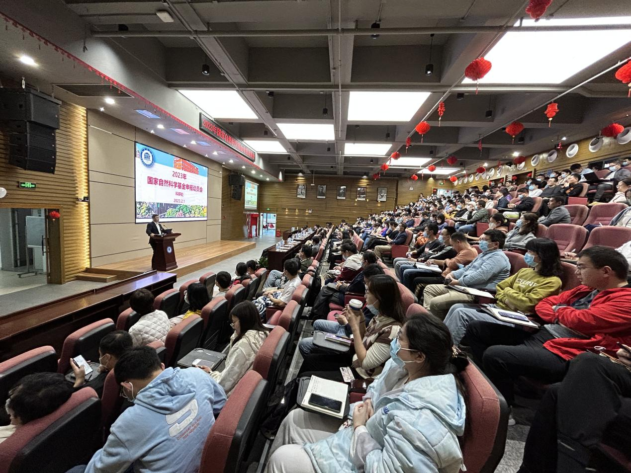 各研究所分管所领导、研究中心主任、科研秘书,以及拟申报基金项目的科研人员约350人参加了会议。会议由科研处副处长谭乐主持。