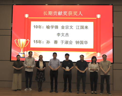 研讨过后,会议进入材料所所长创新奖的颁奖环节,对2023年度优秀的员工和学生予以表彰,颁发了包括“重大项目奖”、“优秀论文奖”、“专利及产业合作奖”“特殊贡献奖”“长期贡献奖”等十四个奖项,共计56人获奖。先进电子材料中心研究员刘睿恒作为材料所科研骨干代表发表了获奖感言,并表示将在未来为整建制科研贡献力量。